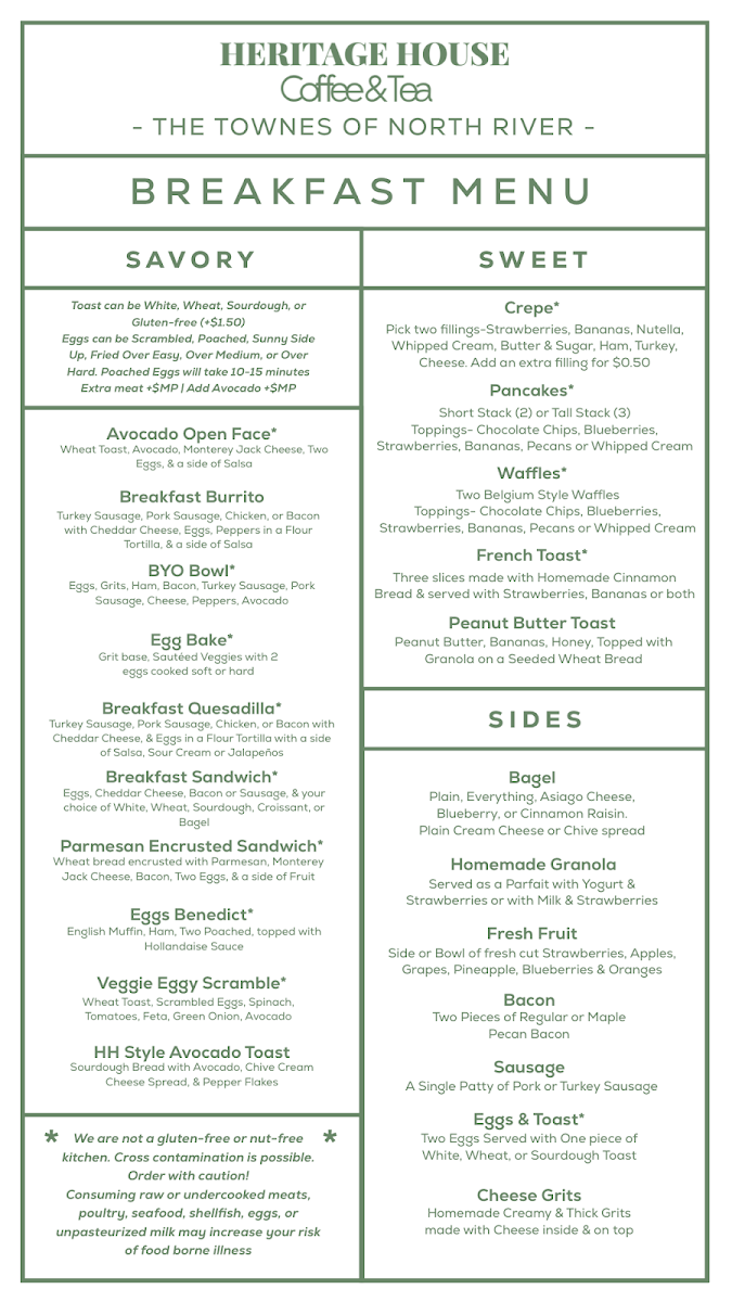 Welcome to Heritage House North River, a charming café nestled in Tuscaloosa, Alabama, that offers a delightful escape for breakfast and lunch enthusiasts. The menu focuses on heartwarming comfort foods, including the ever-popular Belgian Waffles and indulgent breakfast sandwiches that have garnered rave reviews. Each dish is designed to satisfy, whether you’re craving a filling BYO breakfast bowl or a sweet treat from their selection of pastries.